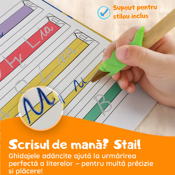 Îmbunătățește scrisul, dezvoltă musculatura mâinii și sporește concentrarea fără frustrare.